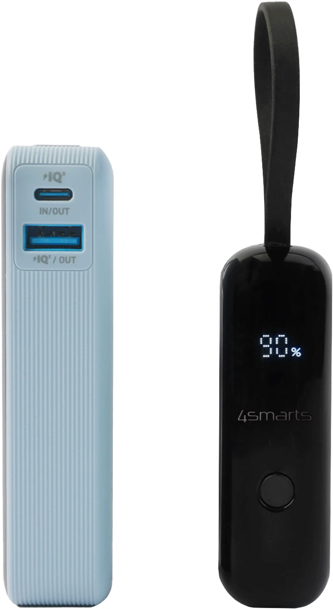 Die 4smarts Powerbank Pocket überzeugt durch ihr integriertes USB-C Kabel, sodass man kein Kabel mitnehmen muss, um ein Smartphone anzuschließen. Das ständige Suchen nach dem passenden Kabel entfällt. Lade zwei Geräte gleichzeitig mit insgesamt 30 Watt, oder verwende den zweiten USB-C Anschluss mit „Passthrough“-Funktion, um die Powerbank selbst nachzuladen, während diese ein Gerät lädt.