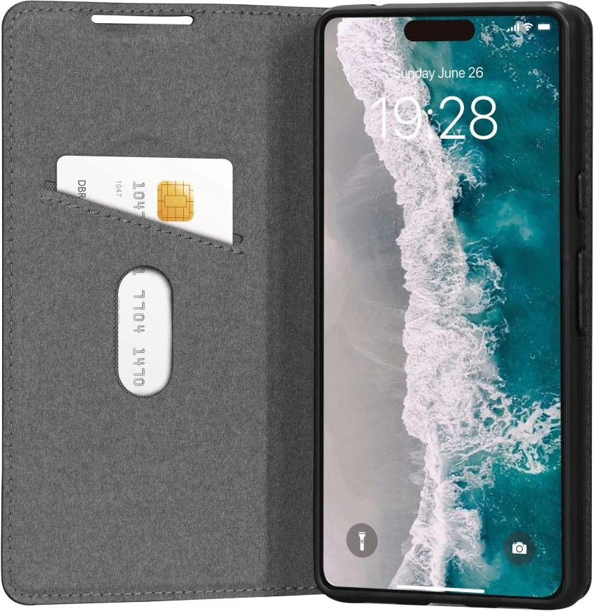 Oslo ist eine aufprallsichere Flip-Wallet-Hülle aus veganem Leder, die wie echtes Leder aussieht und sich auch so anfühlt. Im Gegensatz zu vielen anderen veganen Lederprodukten besteht diese Hülle aus recycelten Kunststoffmaterialien und ist zu 100 % recycelbar. Mit der klappbaren Rückseite können Sie horizontale Videos freihändig ansehen.