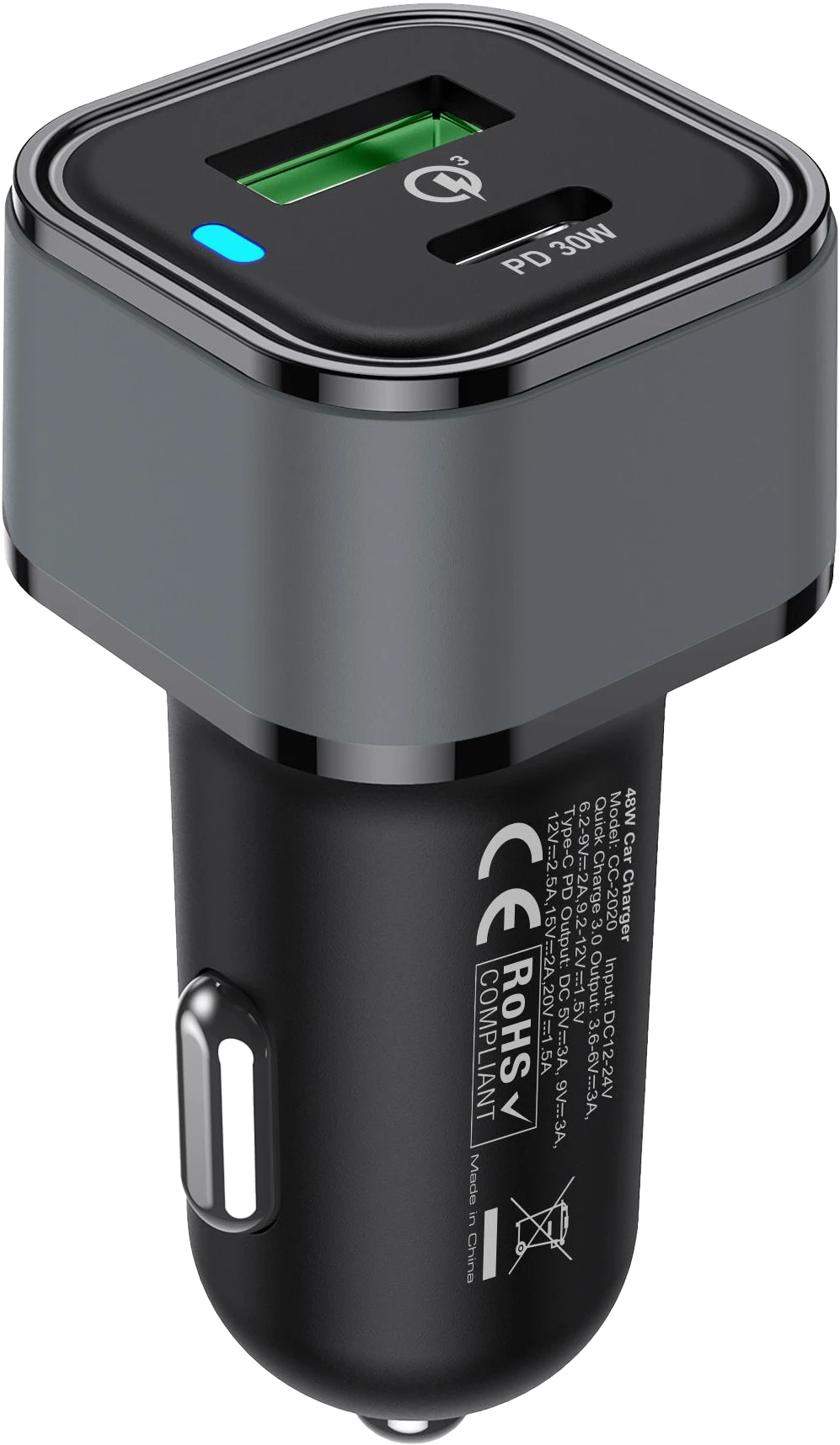 Nevox USB-C PD 30W + QC3.0 Kfz Ladegerät total 48Watt Schwarz