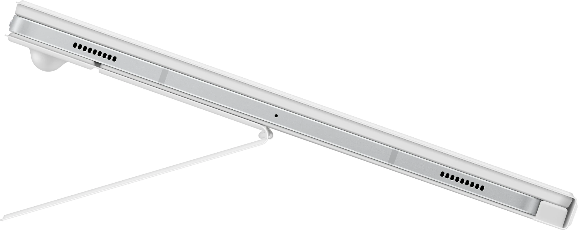Klappe das Cover bis zu 150° zurück, um das Book Cover Keyboard bequem zu nutzen. Passe den Winkel auf der Rückseite einfach an, um deine Position zu finden, für eine entspannte Ansicht, egal ob du zu Hause auf der Couch oder in einem Café arbeitest.